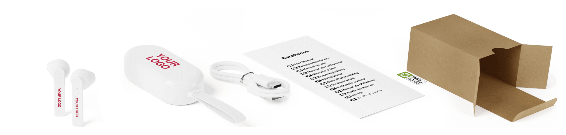 The Duet wireless earphones are the perfect corporate gift, promotional item, or onboarding gift for your business, no matter the size.