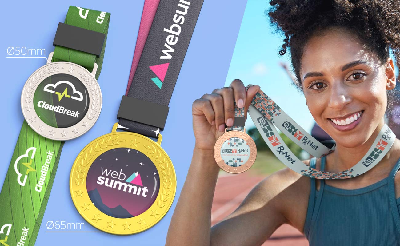 The Podium is our stylish custom medal designed to highlight your brand or event with vibrant photo printing and a sleek decorative trim. The center of the medal features a dedicated branding area, allowing your logo or artwork to be reproduced with exceptional detail, including gradients, fine lines, and full-color designs. Your branding is then sealed beneath a clear resin dome, giving the medal a glossy finish while protecting the artwork from scratches and everyday wear. Podium medals also feature a stylish outer trim detail, creating an eye-catching frame that draws attention to the logo in the center. This combination of decorative edging and vivid printing gives the medal a premium, professional look that recipients will be proud to receive. Available in two size options – 50mm or 65mm circumference Podium medals can be tailored to suit the scale of your event. You can order from a selection of gold, silver, or bronze finishes, making them perfect for recognizing 1st, 2nd, and 3rd place achievements.
