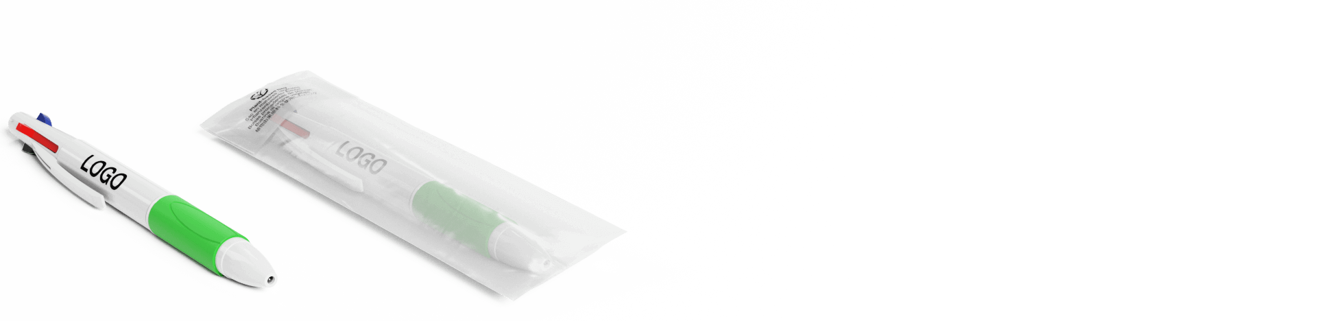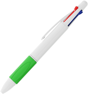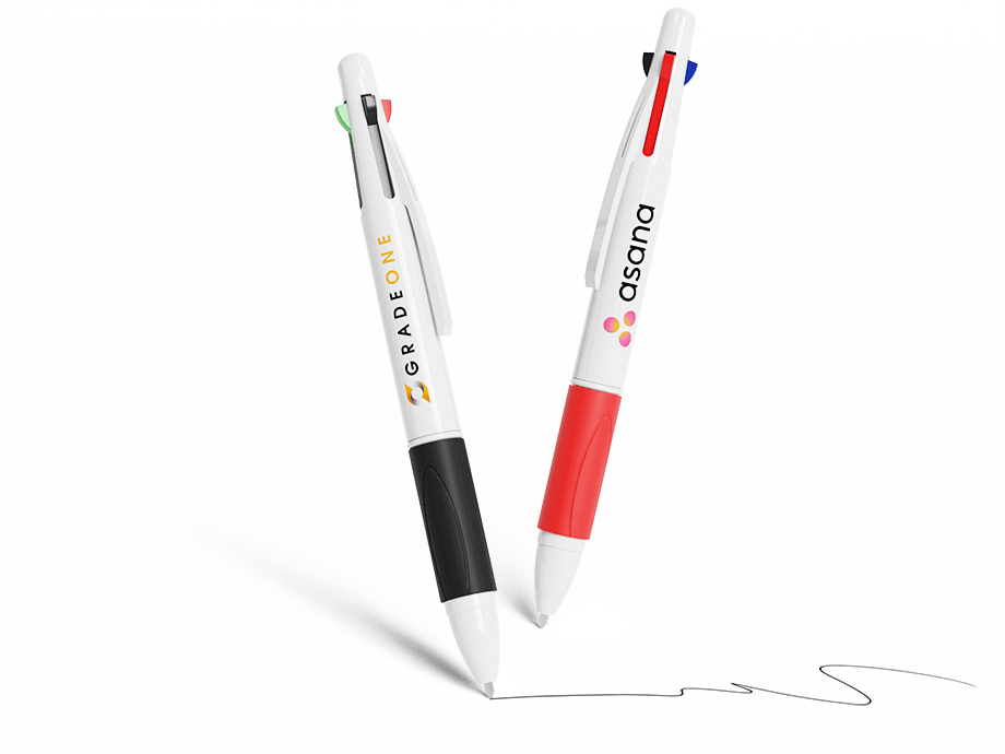 The Quad is a classic 4 colour pen that boasts blue, red, green and black ballpoints in the 1 model. Each colour option reveals and retracts via the click sliders at the top of the pen. The comfortable thermoplastic rubber grip is available in a variety of colours to complement your brand style. The exterior white shell can be Photo Printed with your logo, slogan and more.