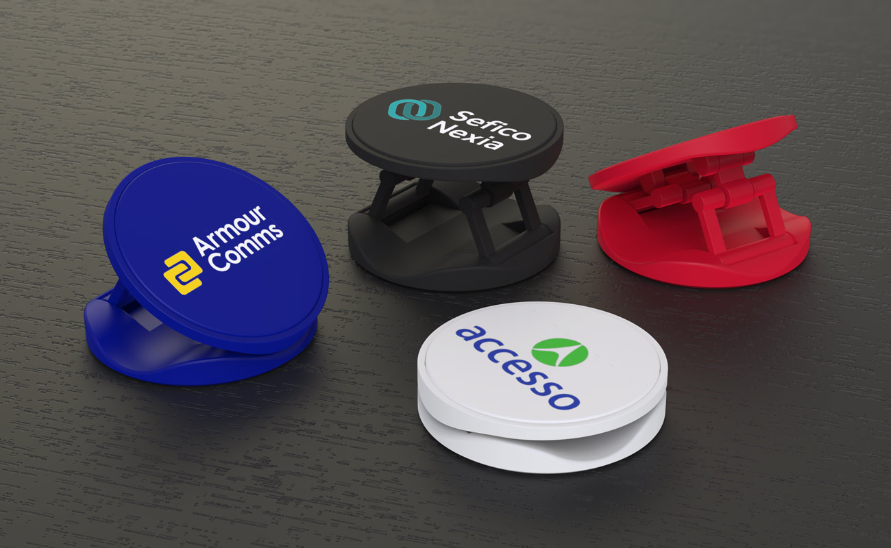 Our Pass Smartphone Wallet features a large branding area to showcase your logo, slogan, website address and more. The elastic sleeve can securely store notes and cards, and the unique kickstand is great for when you want to watch something on your smartphone. The Pass can be easily secured to all the major smartphone models via the adhesive backing.