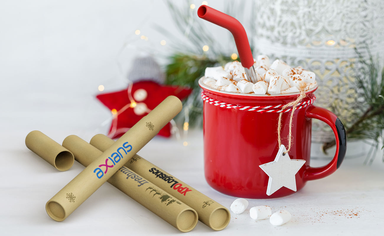 Ask about our limited edition Christmas Straw Tube Accessory - a popular gift idea for Employees and Clients. You can choose from a select range of festive patterns to accompany your logo and brand message.