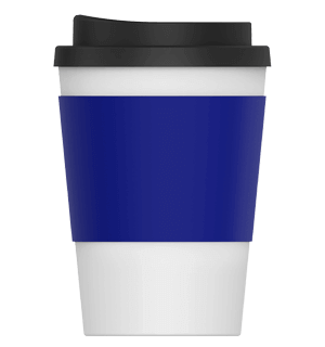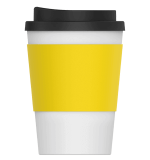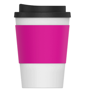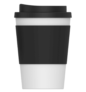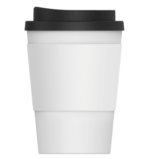 The generous branding area on the silicone cup sleeve keeps your logo front and centre. This exposure, coupled with our accurate and vibrant printing, will make your design unmissable and a true standout. You can also choose the colour of the cup’s sleeve from our range of 8 fantastic colours to align with your company’s colour scheme and make your logo pop! The classic white body and black lid provide the perfect backdrop to showcase your custom branding options.