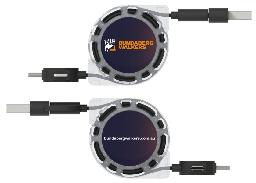 The Motion USB Cable features an enlarged branding area on both sides, ready to be Photo Printed with your image, logo, slogan, event details and more. The Motion supports data transfer and charging capabilities and is compatible with all major devices due to the 4 connector options, including a standard USB connector, Micro-USB, USB-C and a Lightning Adapter. You can seamlessly extend and retract the cables by pulling both cable ends at the same time. For a wooden touch, check out our model.