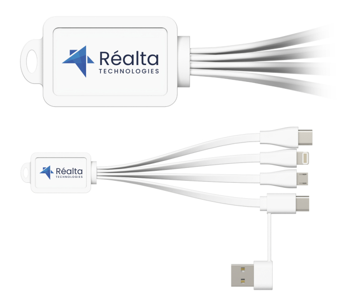 The Multi combines 4 cables into 1 neat and handy model. Your Customers and Clients can plug the standard USB connector into a power source and charge up to 3 devices via the Lightning adapter, USB-C connector and Micro-USB connector. The Multi can attach to a set of keys and features a beautiful surface area to Photo Print with your image, logo, website address and slogan. For a wooden touch, check out our model.