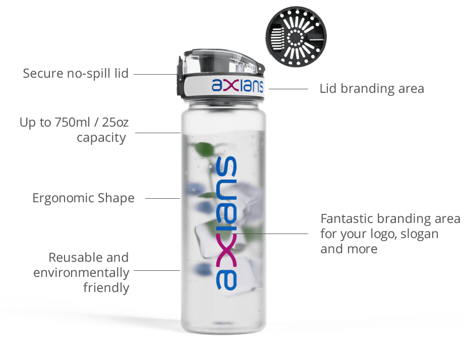 The Aqualok Infuse makes an excellent addition to external or internal marketing campaigns where promoting a healthy lifestyle and your brand is key. It can be entirely customised and tailored to match your brand’s aesthetic — from the colour of the bottle to the artwork printed on it.