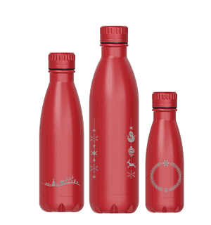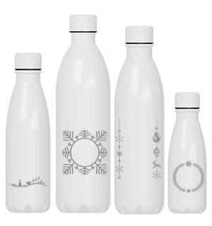The Nova Pure Christmas model is a limited edition Water Bottle for the festive season. Related to our , you can choose between 4 Laser Engraved Christmas patterns to accompany your logo. The Nova Pure Christmas is made from a high quality stainless steel and features vacuum insulated double-walled technology. A great gift or giveaway idea for employees, customers and clients.